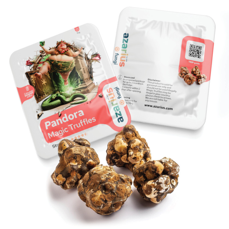 Les Truffes Magiques Pandora ont une saveur terreuse, riche en arômes de noisette, avec une texture ferme et moelleuse. Ceux qui préfèrent un goût plus doux peuvent les trancher et les infuser dans un thé au citron ou au gingembre pour une expérience plus douce sans perdre de puissance.