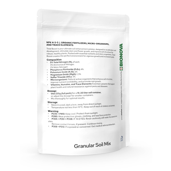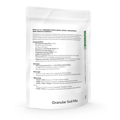 Pour ceux qui recherchent la simplicité ultime, les meilleurs engrais pour le cannabis dans ce cas sont ceux qu’on mélange directement au substrat et qu’on oublie. Il suffit juste d’arroser normalement et les plantes de cannabis disposeront des éléments nutritifs nécessaires à leur bon développement. Total Care est exactement cette solution. Un seul engrais à mélanger dans son terreau pour une phase végétative et une floraison luxuriantes.
